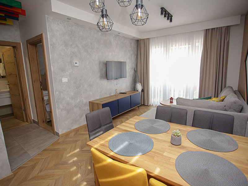 Ugodan porodicni apartman sa odvojenom spavacom sobom. Apartman ima 33m2.