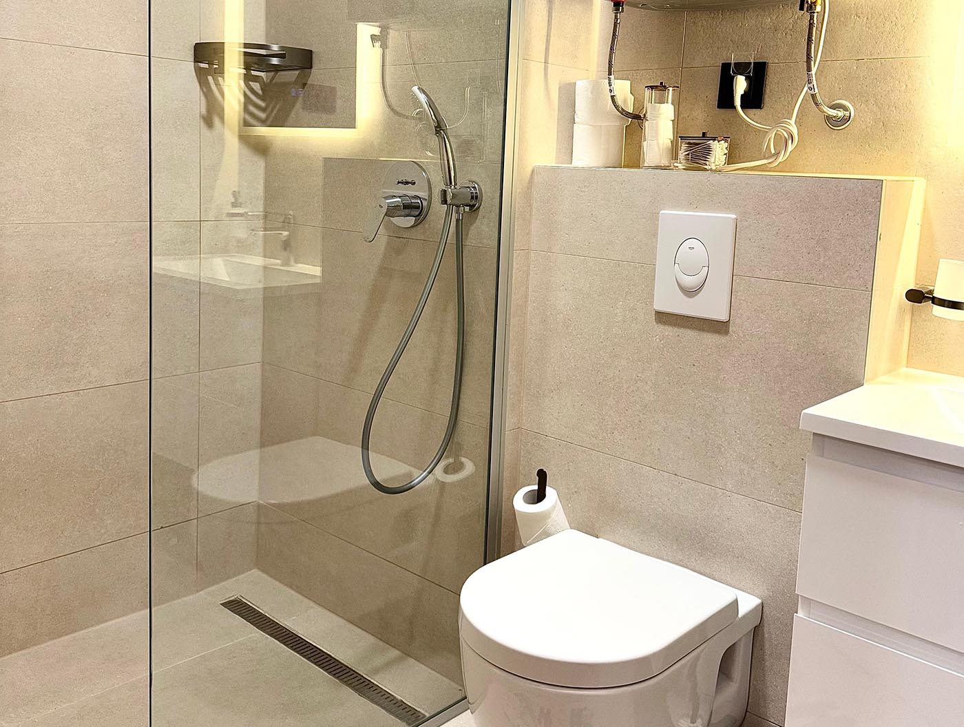 Kupatilo: tuš-kabina, fen za kosu, obezbijeđeni peškiri