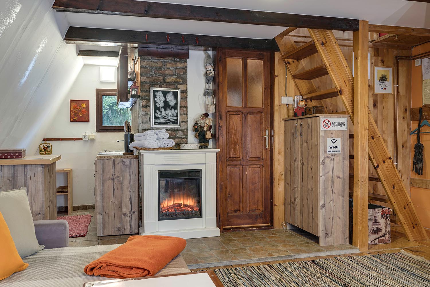 Dnevni boravak sa el.kaminom, IC sauna. Parking ispred kuce.
