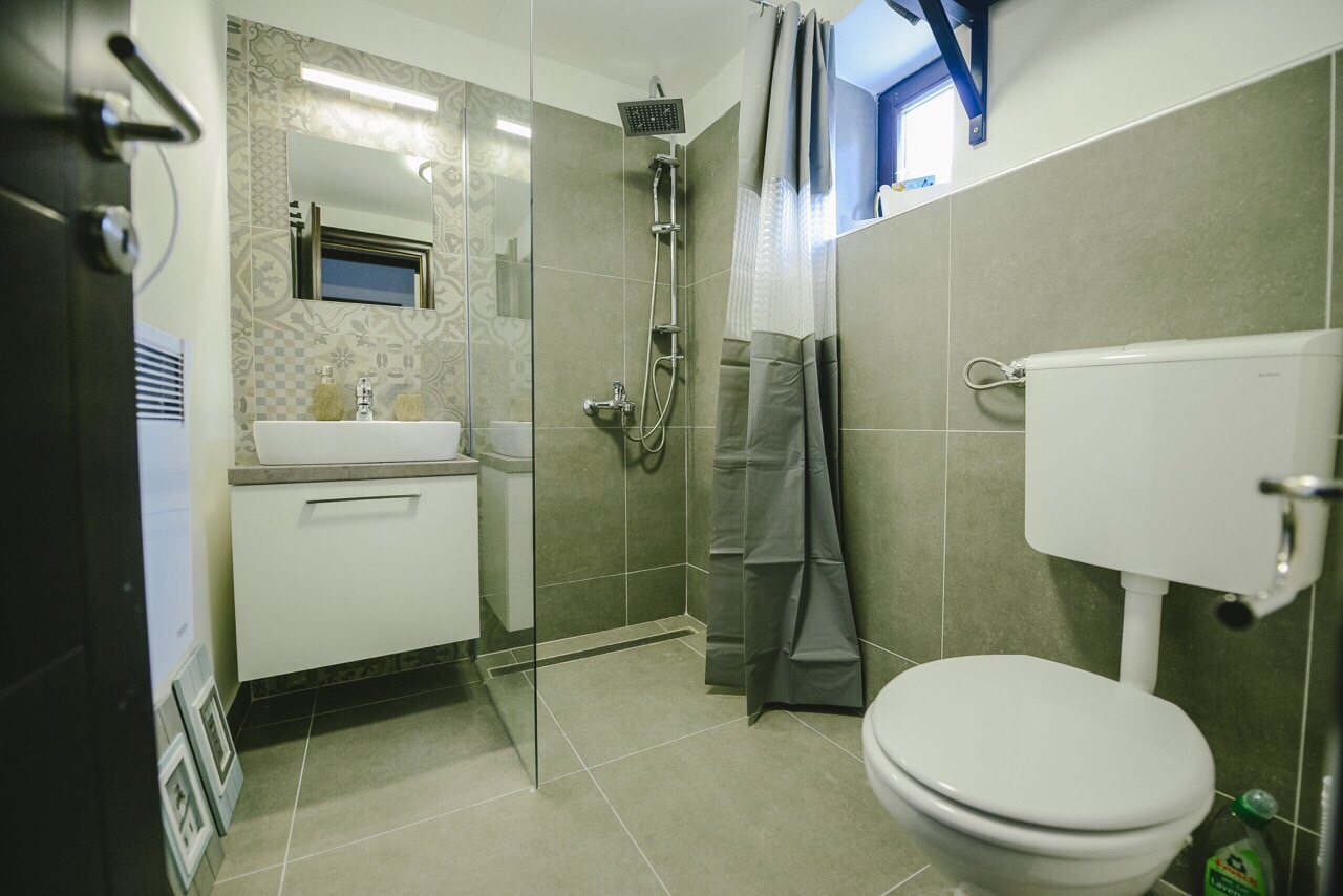 Na istom nivou takođe nalazimo moderno kupatilo sa ustakljenom tuš kabinom.