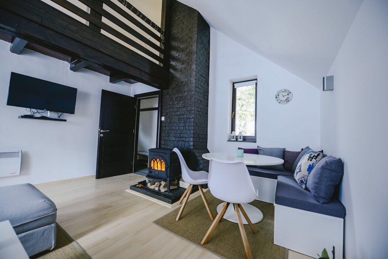 Prijatne boje inspirisane prirodom i moderan planinski ambijent, koji sa kaminskom pećicom, posebno namjenjenoj da toplina i ugođaju budu u jednom, je nešto što će Vaš boravak u ovoj vikendici učiniti nezaboravnim.